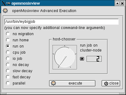 | -run on | start a job on the node you can choose with the "host-chooser" |